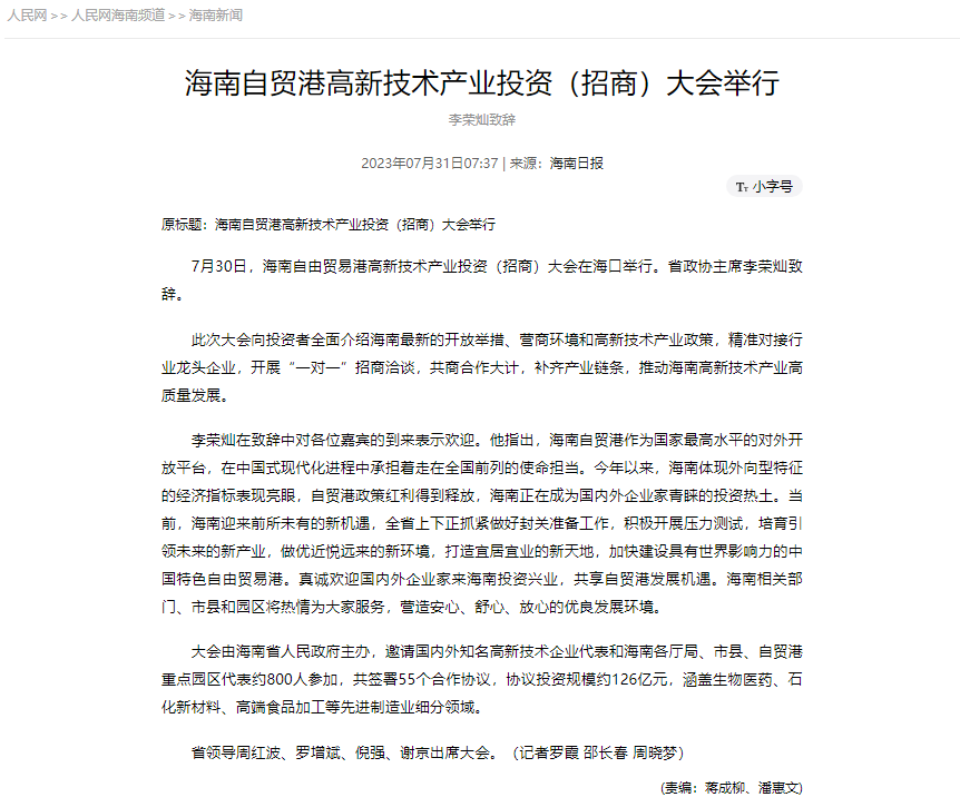 中霆世紀參加海南自貿(mào)港高新技術(shù)產(chǎn)業(yè)投資(招商)大會